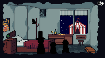 Arte minimalista, hecho completamente para la jam: siluetas, sombras y pequeños elementos escénicos.